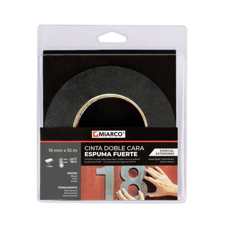 / Cinta doble cara espuma fuerte negra 19mmx10m exteriores MIARCO