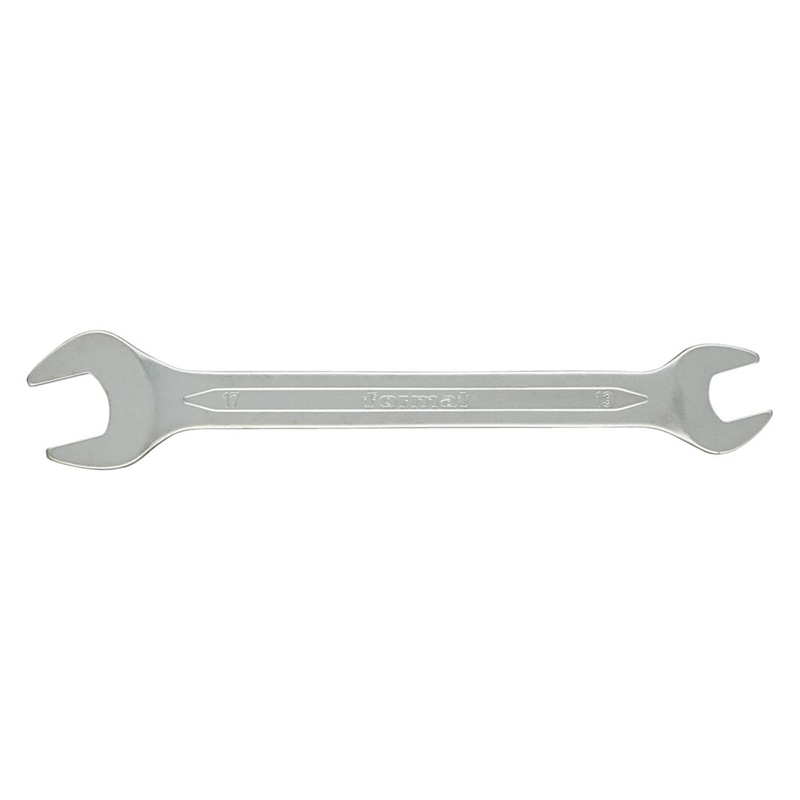 DIN 3110, ISO 3318. De acero de cromo-vanadio, forjado, cromado mate, posición de boca 15°, con cabezas planas y vástago ovalado antideslizante.