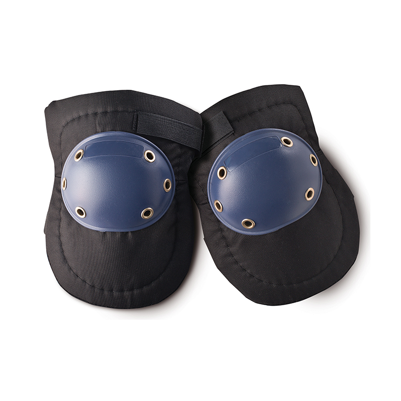 Rodillera con caparazón rígido de PVC al exterior (contacto con el suelo) y acolchado al interior (contacto con la rodilla) fijable por cinchas regulables a la rodilla y fijable mediante velcro.